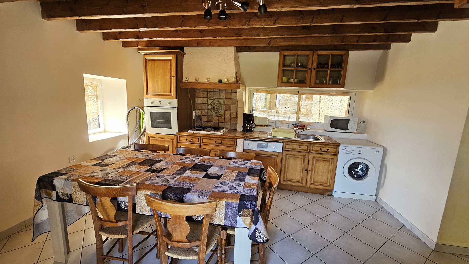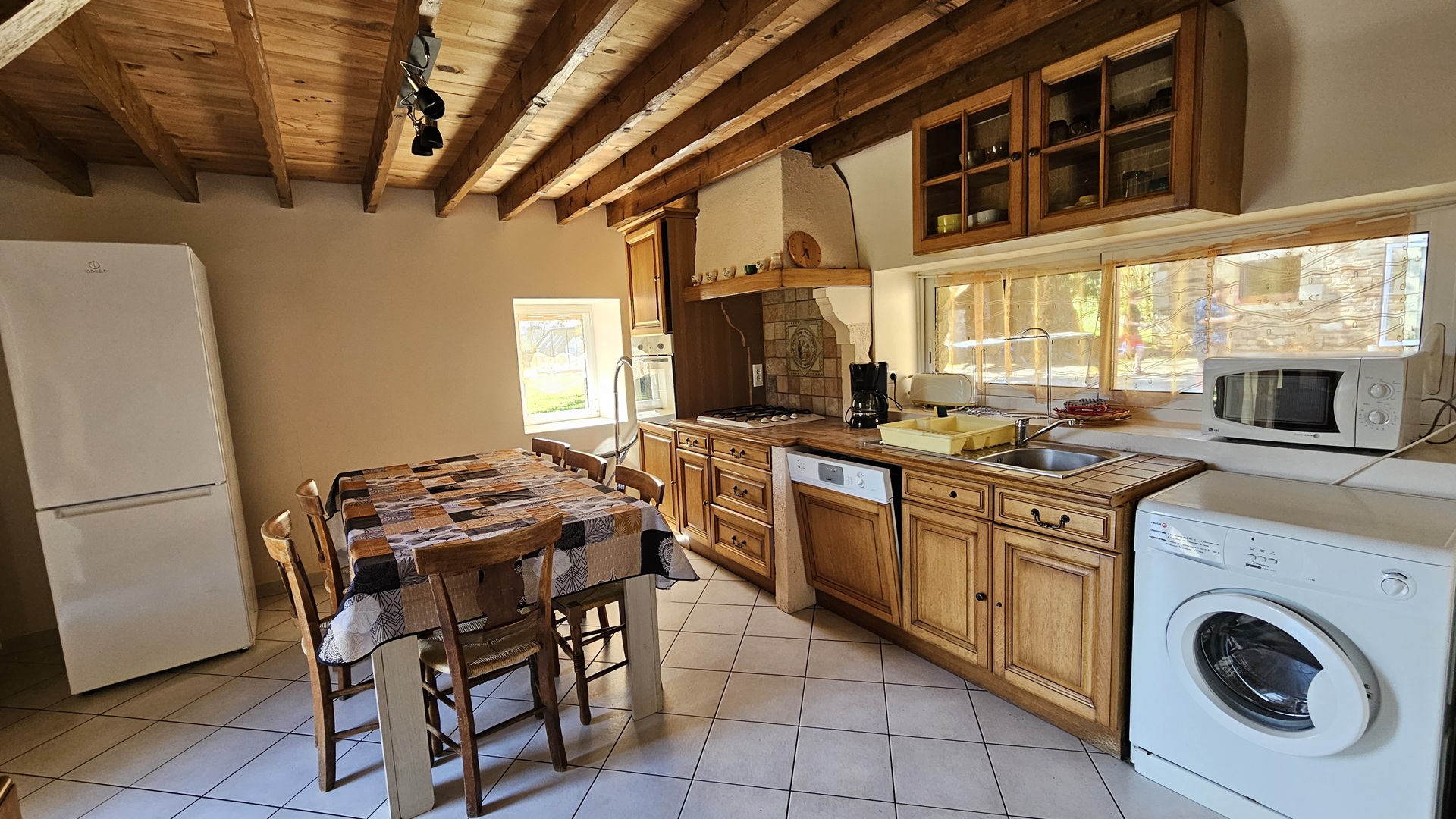 Cuisine équipée pour 8 personnes, avec plaque de cuisson, four, lave-vaisselle, vaisselle, cafetière, frigo, micro-onde