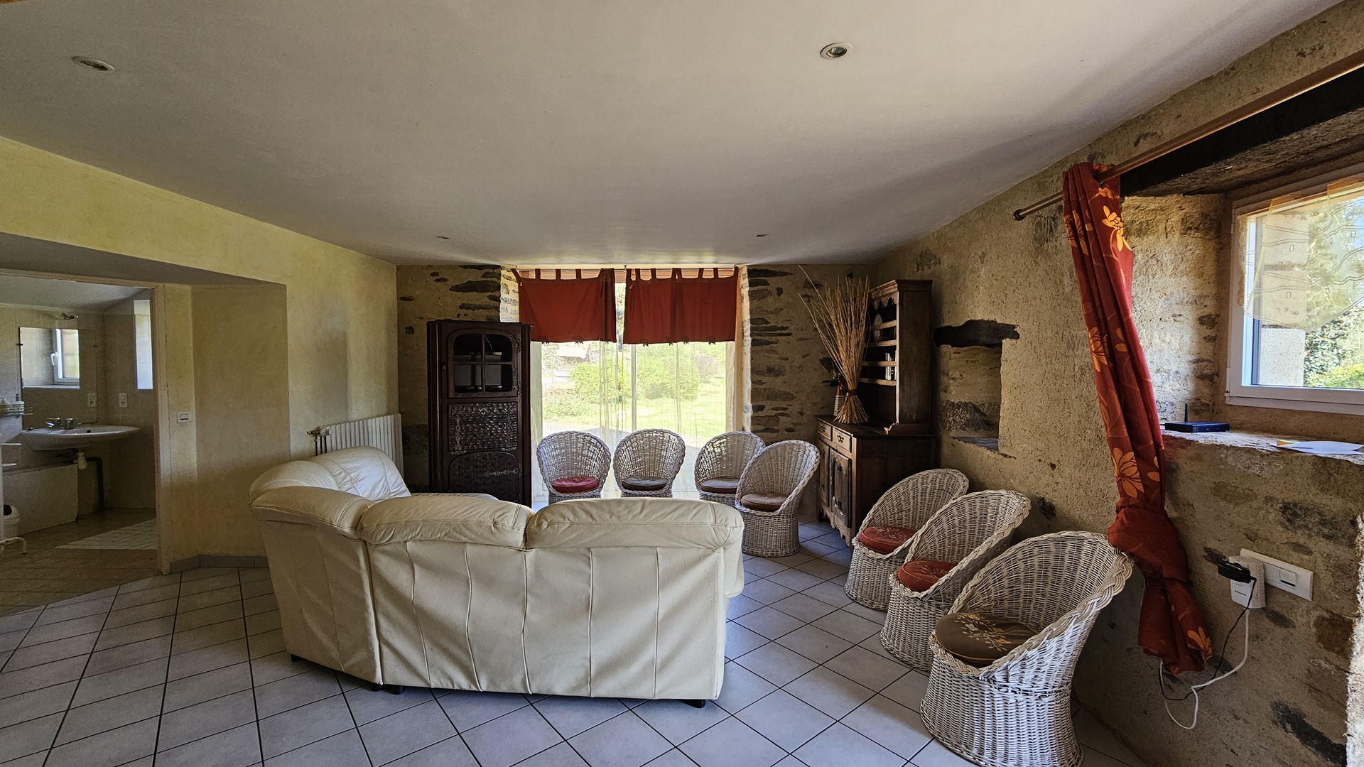 Espace salon avec canapé et fauteuils, 1 chambre avec un lit double, salle de bain et WC, PMR